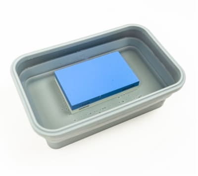 Læg din slibesten i vand, et sted mellem 10 til 15 minutter. Fjern og ryst overskydende vand af.